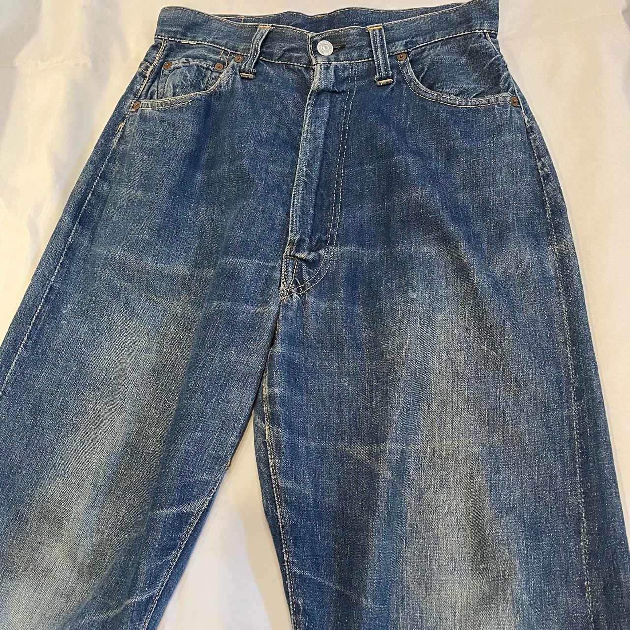 股上が深くシルエットも太めなので男性にもオススメです。特に目立つダメージなどはありませんが、ヴィンテージ 品をご理解の上、神経質な方はご遠慮下さい。