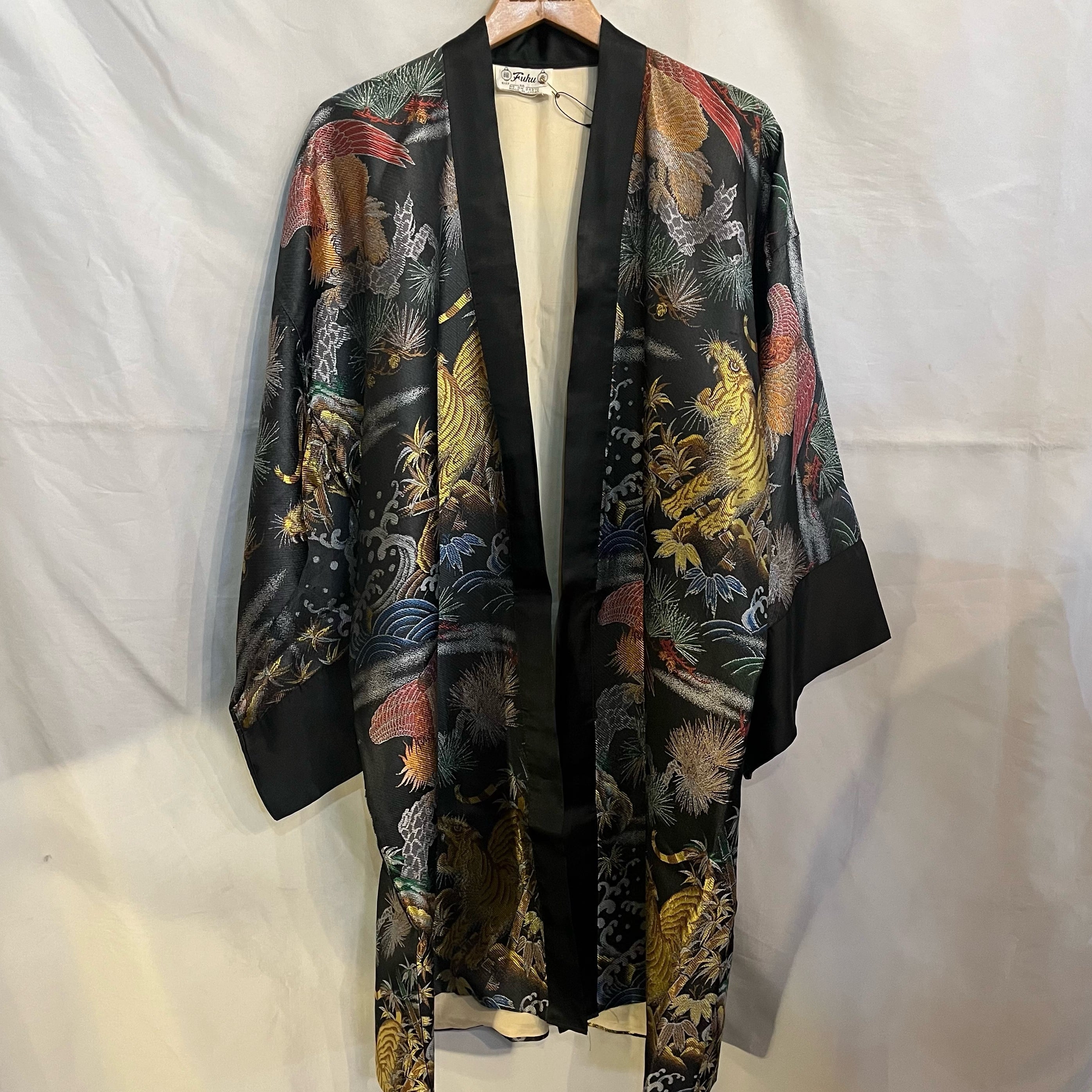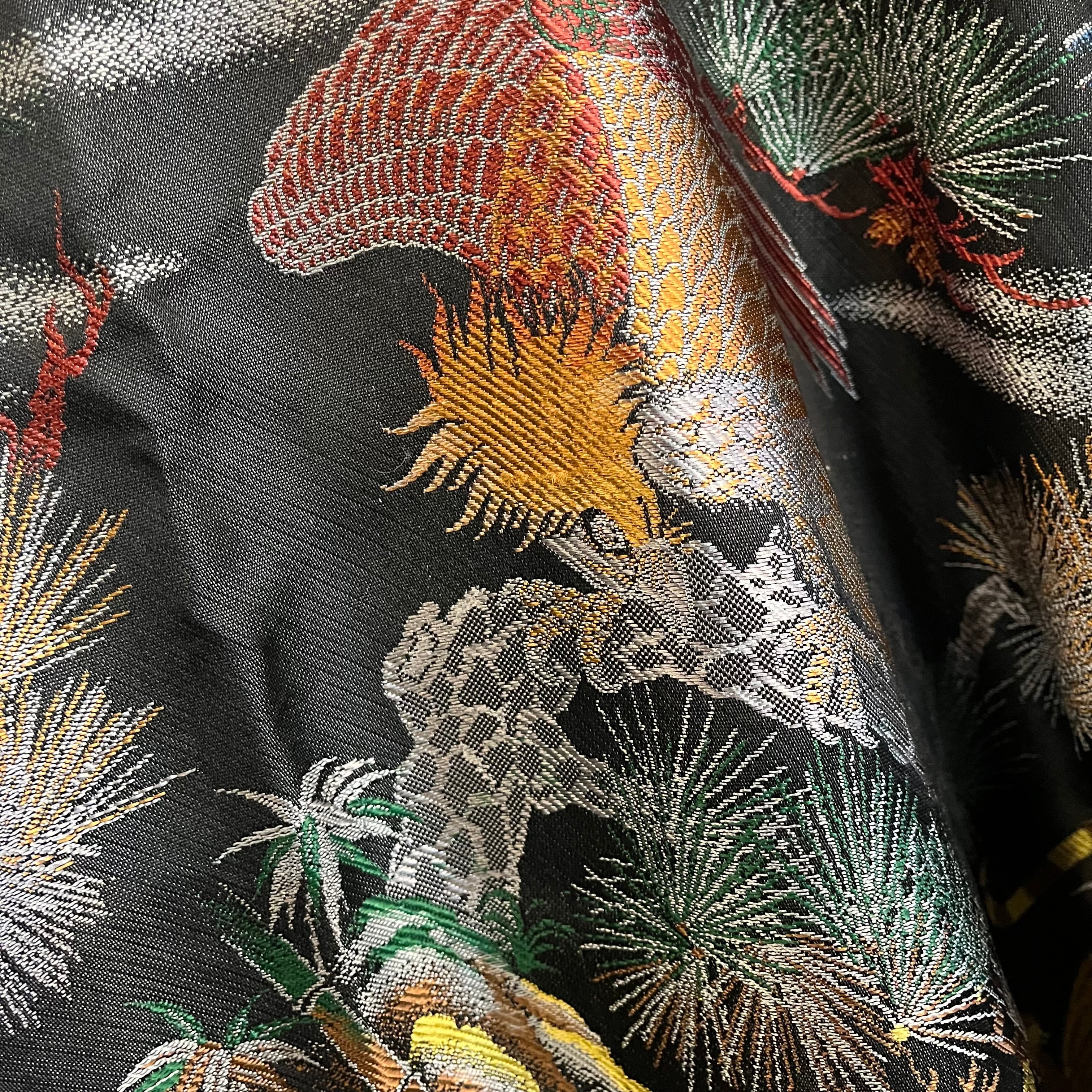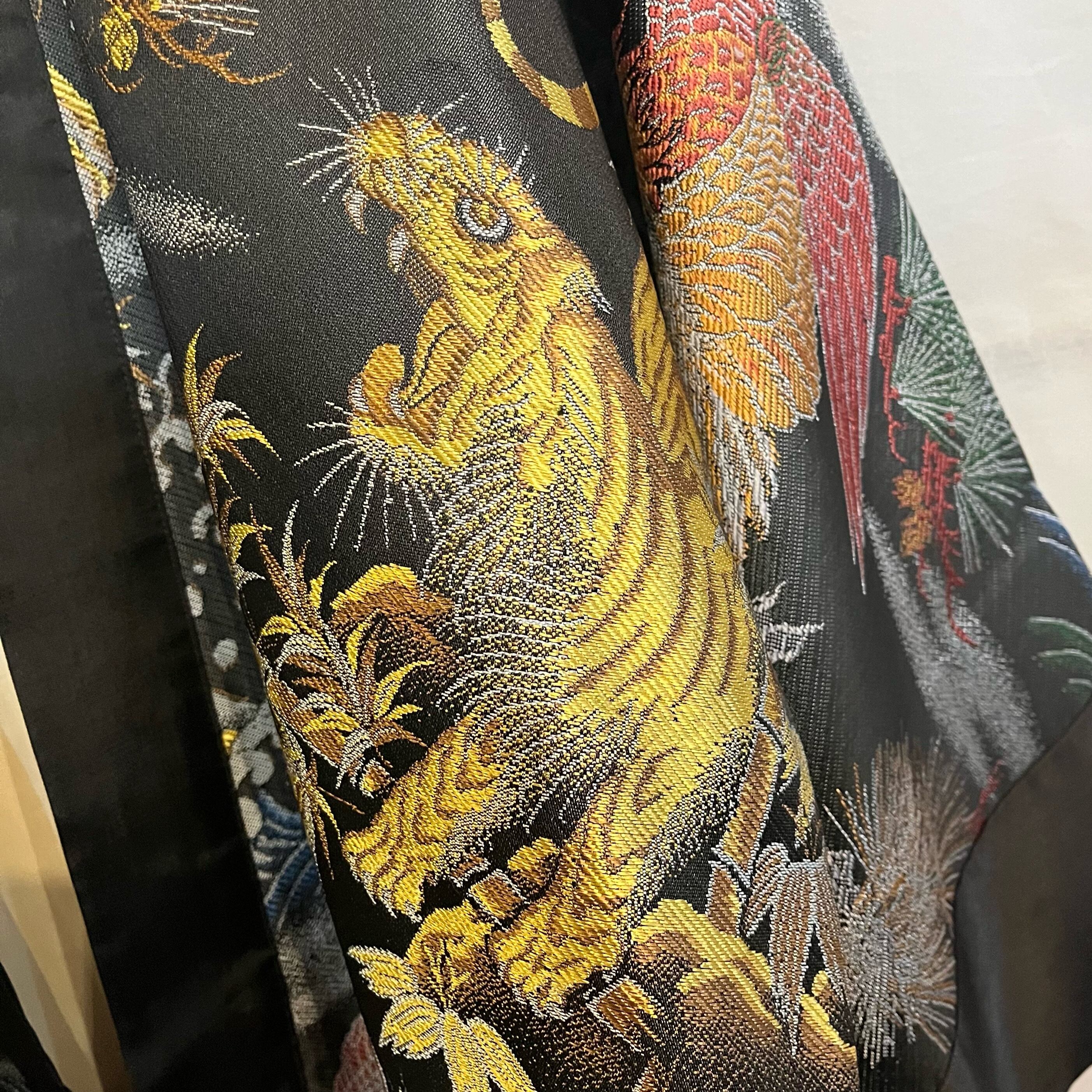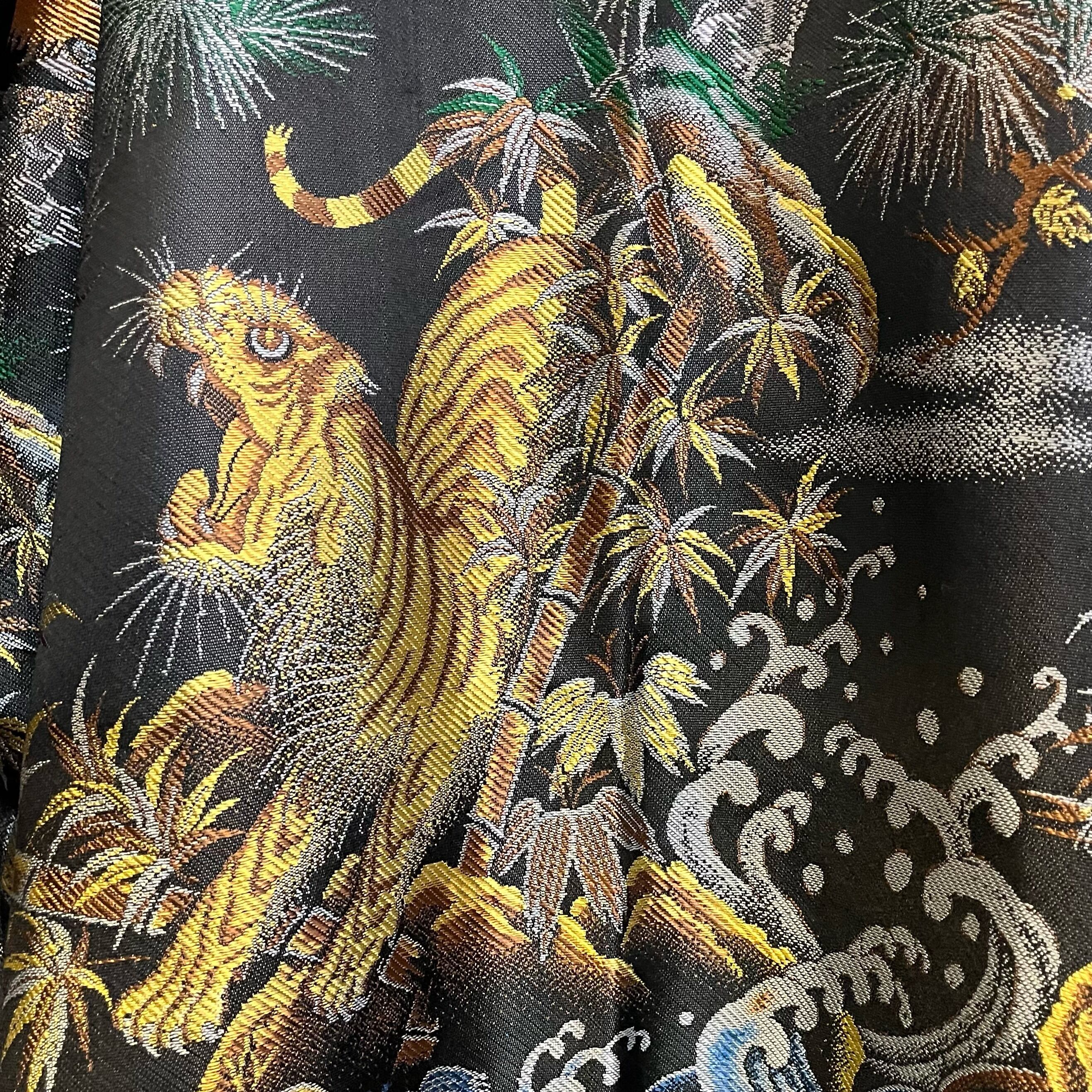福FUKUと言う会社が作ったもので迫力ある刺繍が施されています。素材はレーヨンと思われます。