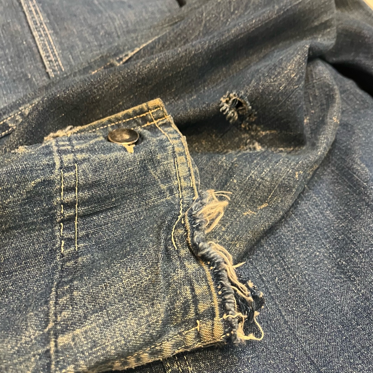 所々擦り切れやホツレなとのダメージがありますが、非常に雰囲気の良いカバーオールです。