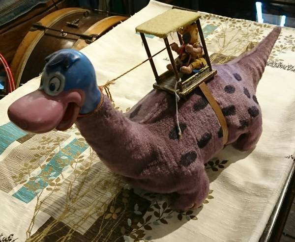 ブリキ製製で恐竜部分はベルベットの洋梨生地で覆われています。