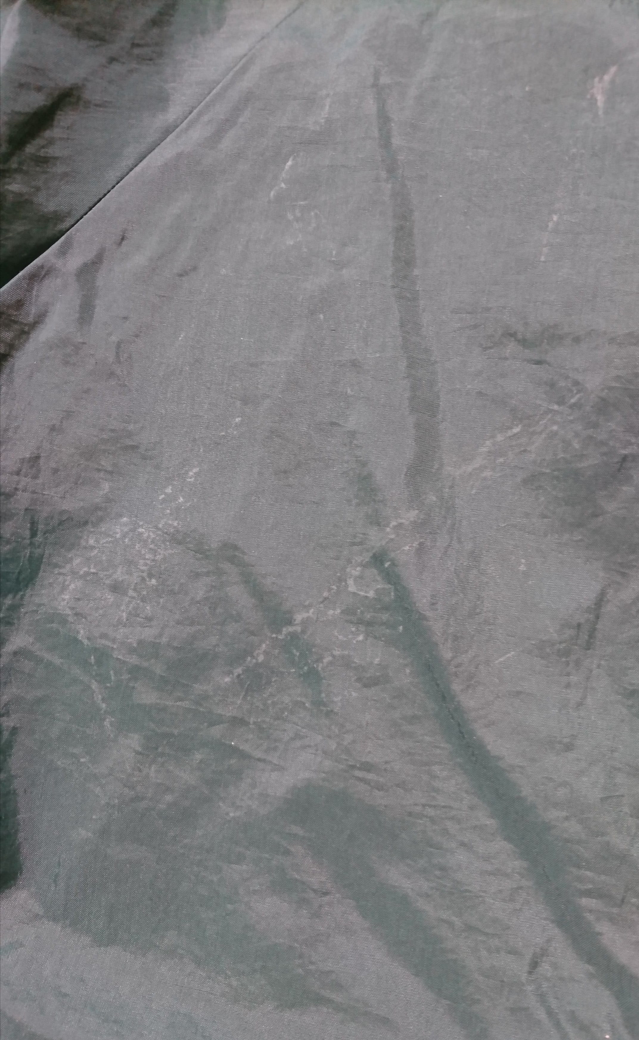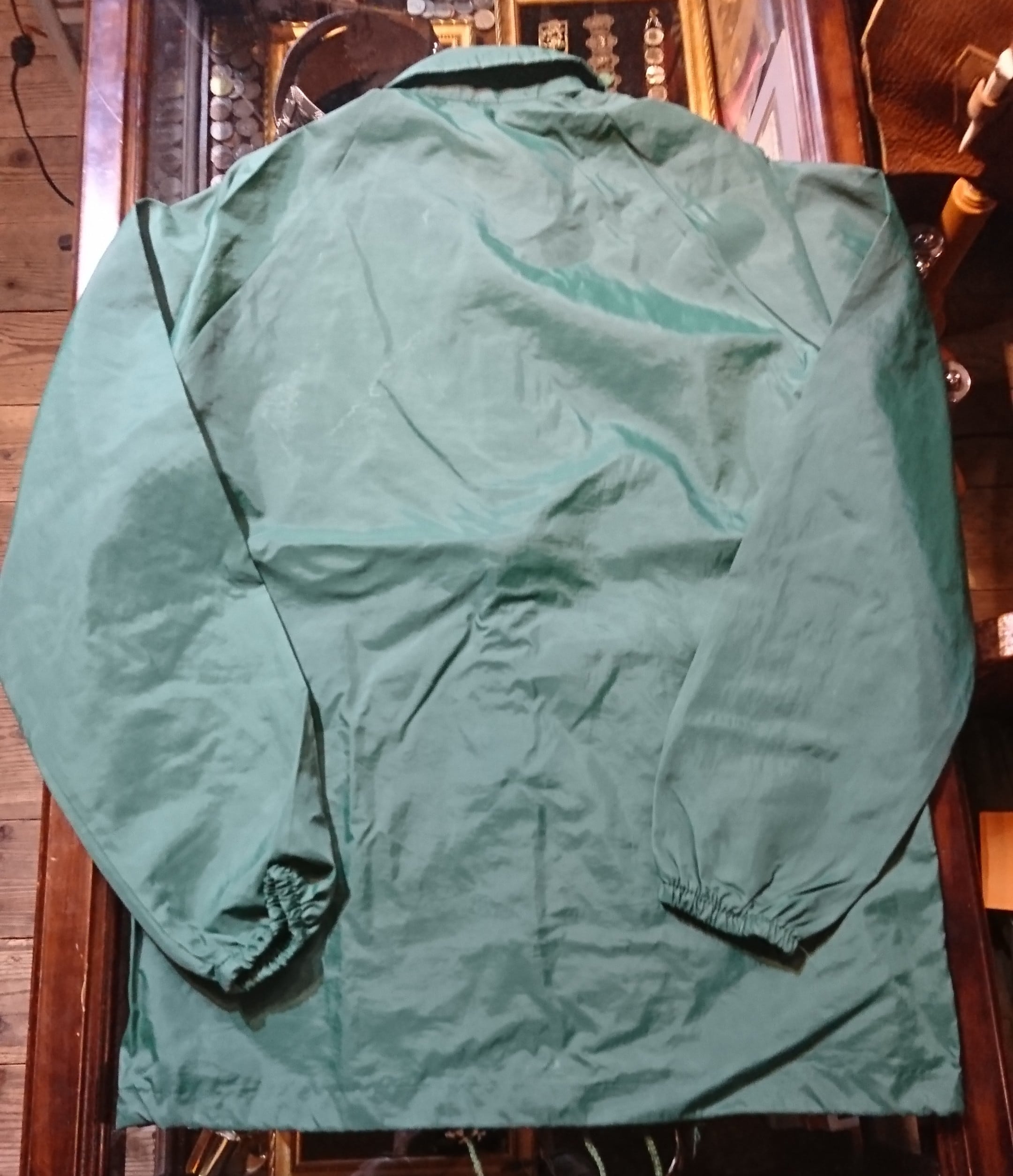背中に汚れのような跡、脇辺りにステッチのほつれが見られます。