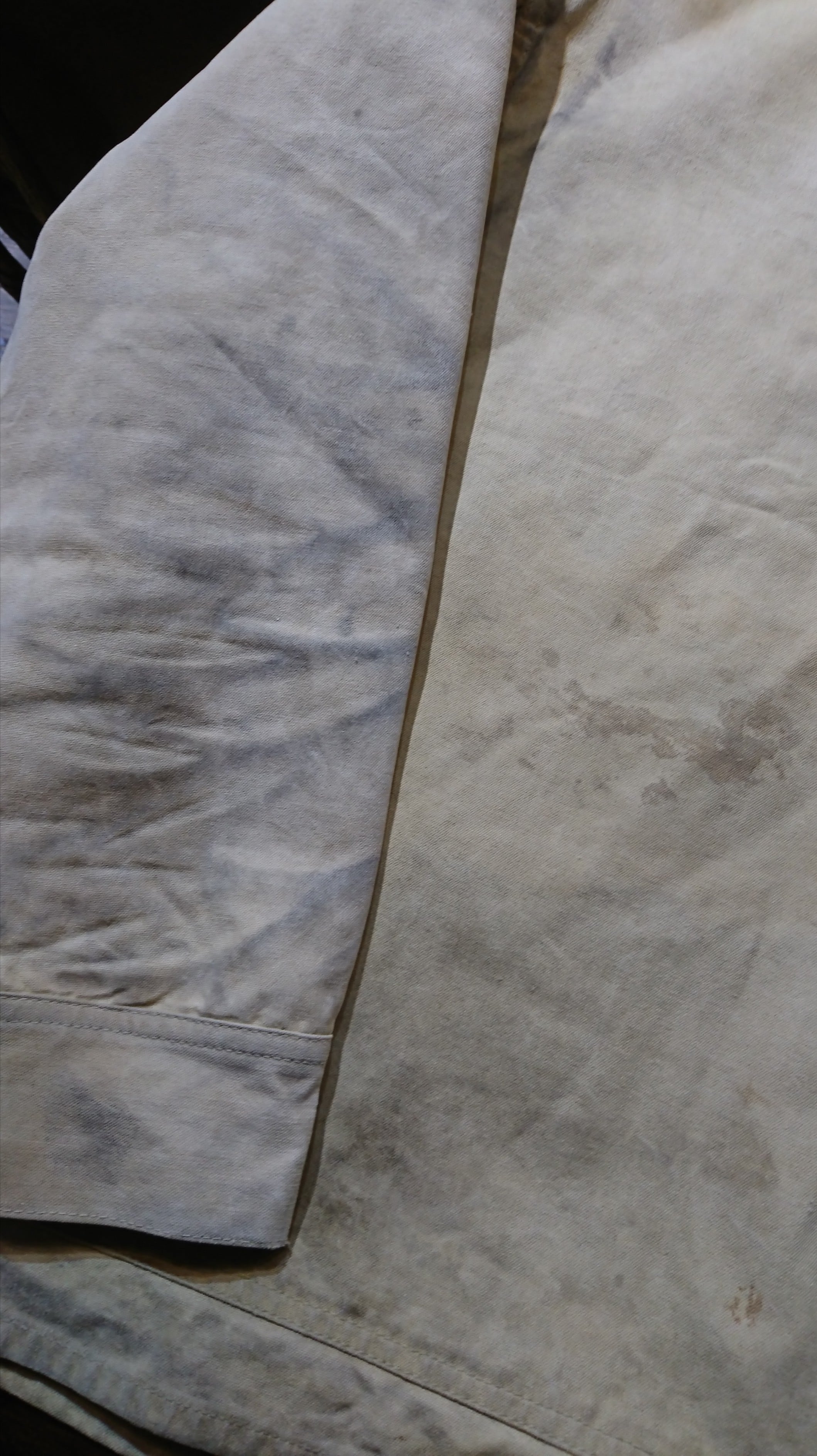 全体に薄い汚れシミ、色褪せなどが見られますが、そこがヴィンテージでしか味わえない風合いとなり存在感ある風合いになっています。
