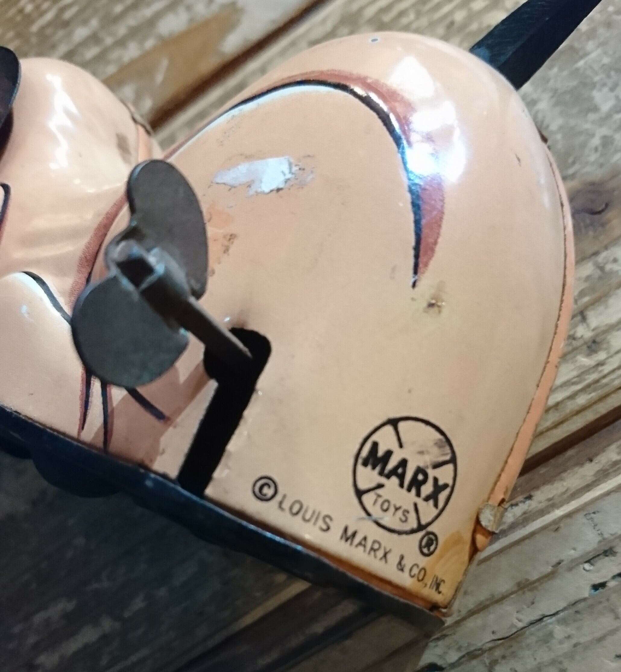 ゼンマイを巻くとしっぽをクルクル回しながら動きます。