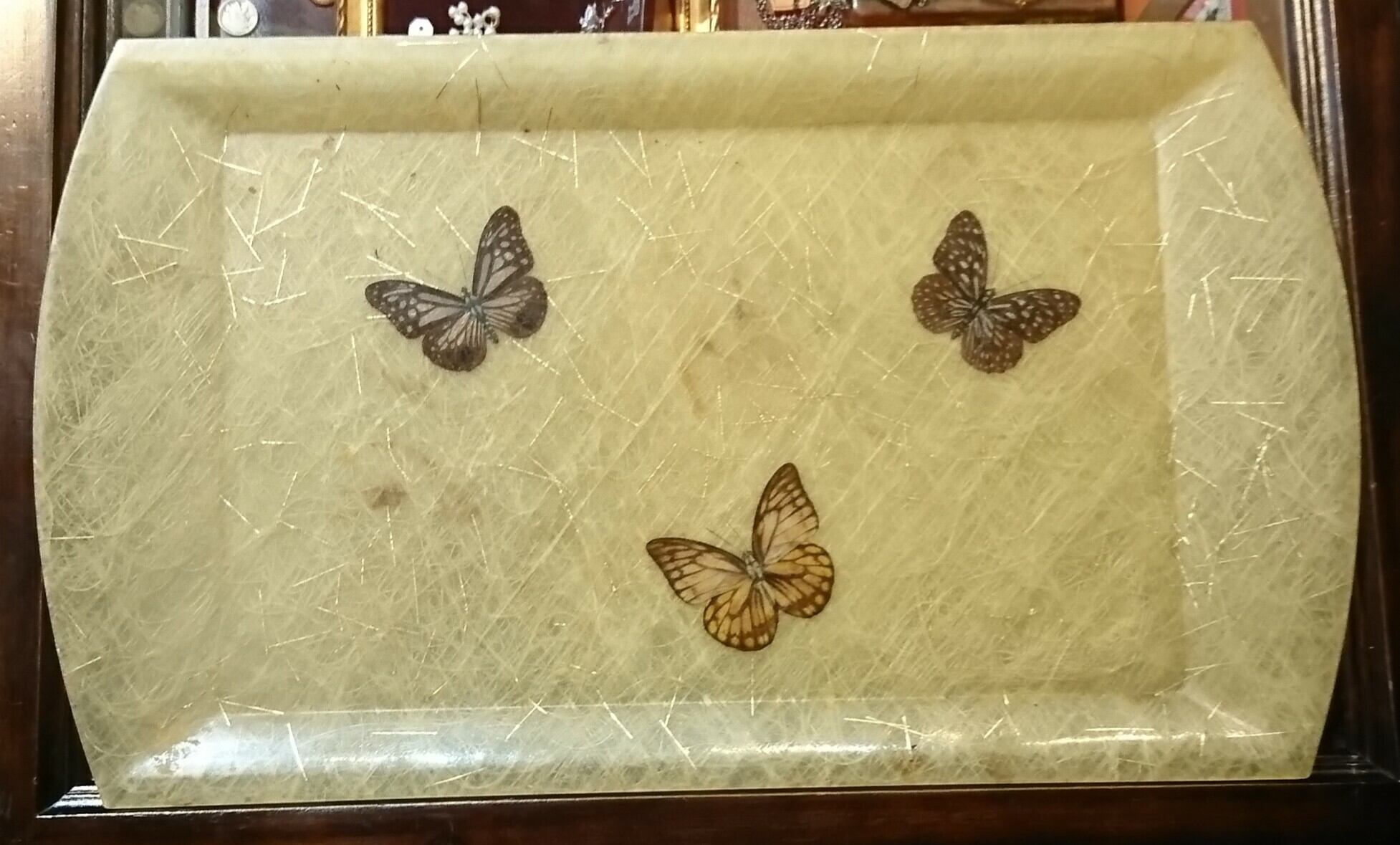 グラスファイバーの中に本物の蝶々をあしらった50s らしいデザインのトレイです。