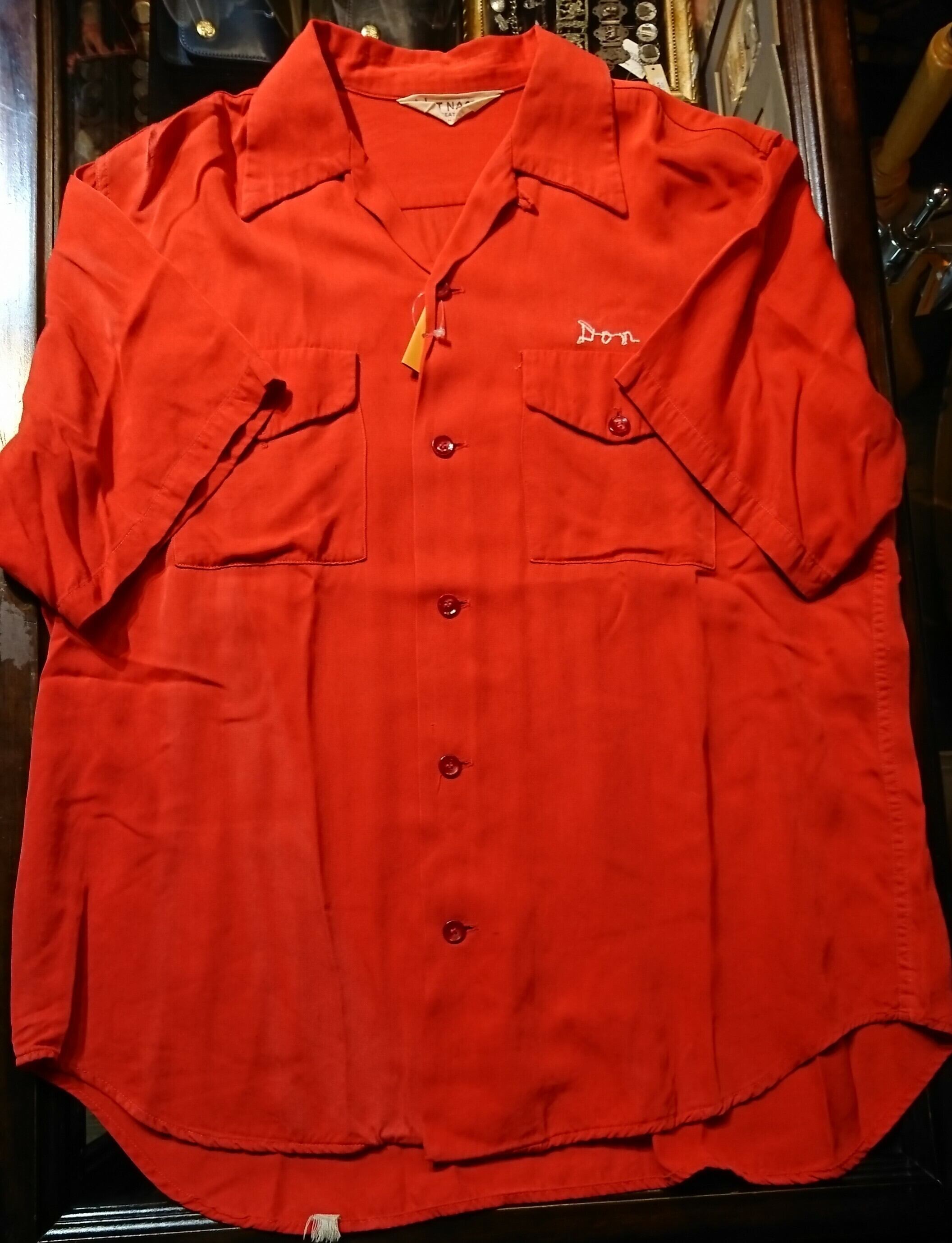 朱色がかったボディにチェーンステッチカッコいいヴィンテージ ボウリングシャツ。