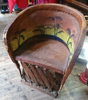 天然の木を組み合わせレザーを張りパームツリーの絵がペイントされています。