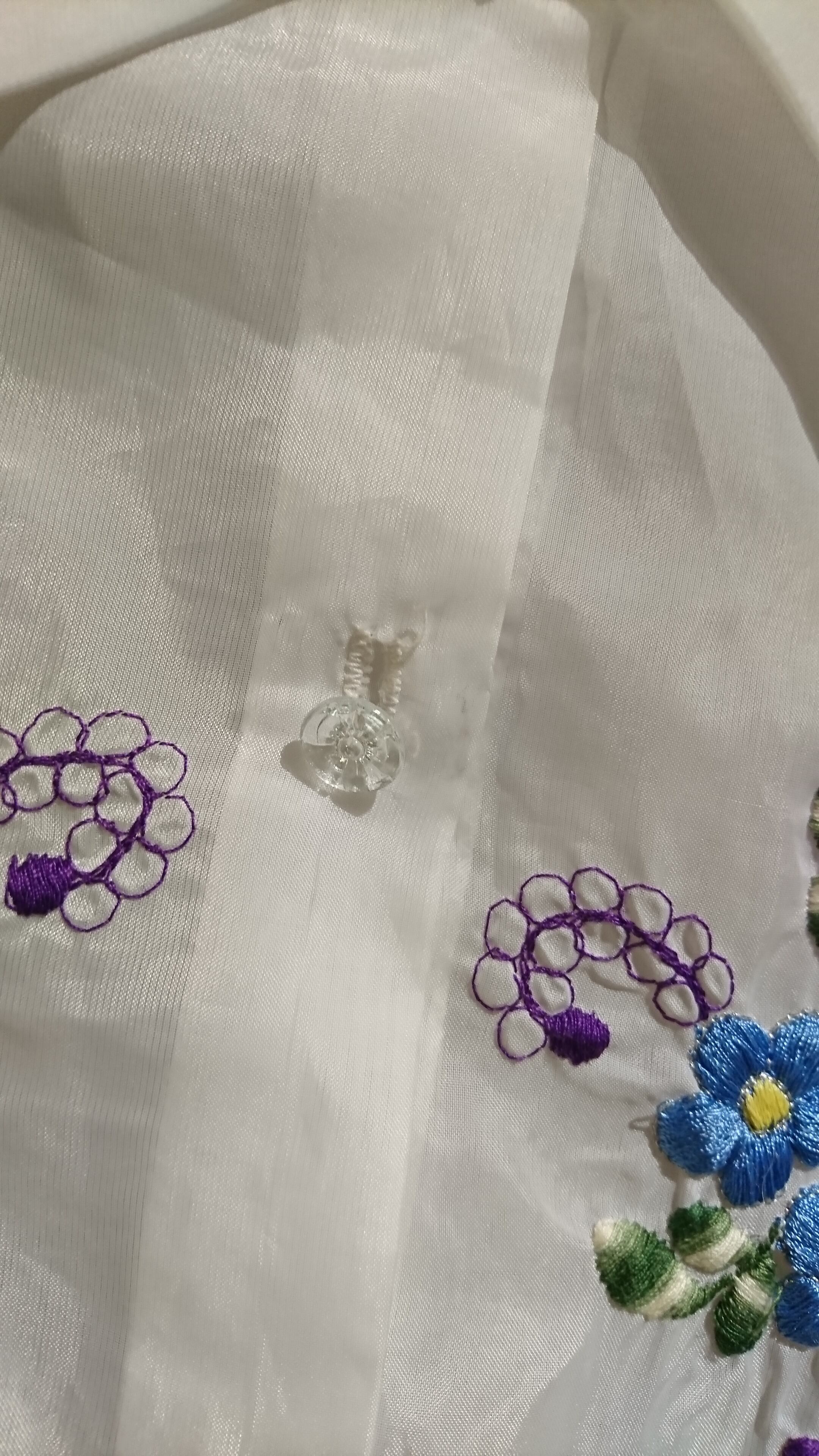 ボディーや袖に可愛い花柄の刺繍が入っています。