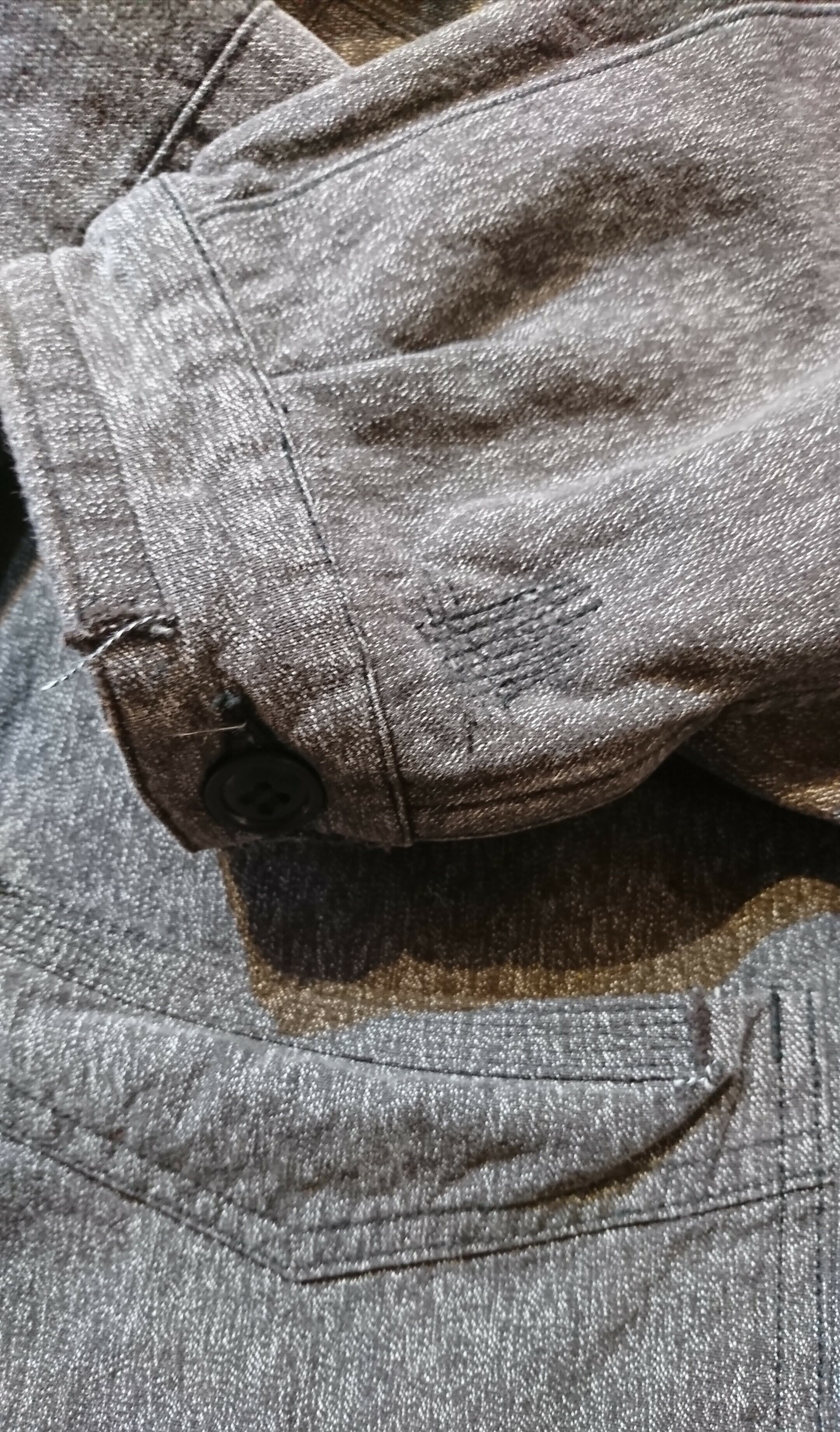 本格的なブラックシャンブレー 生地ににダメージ加工を施したミュラー&ブロスらしいワークジャケットです。