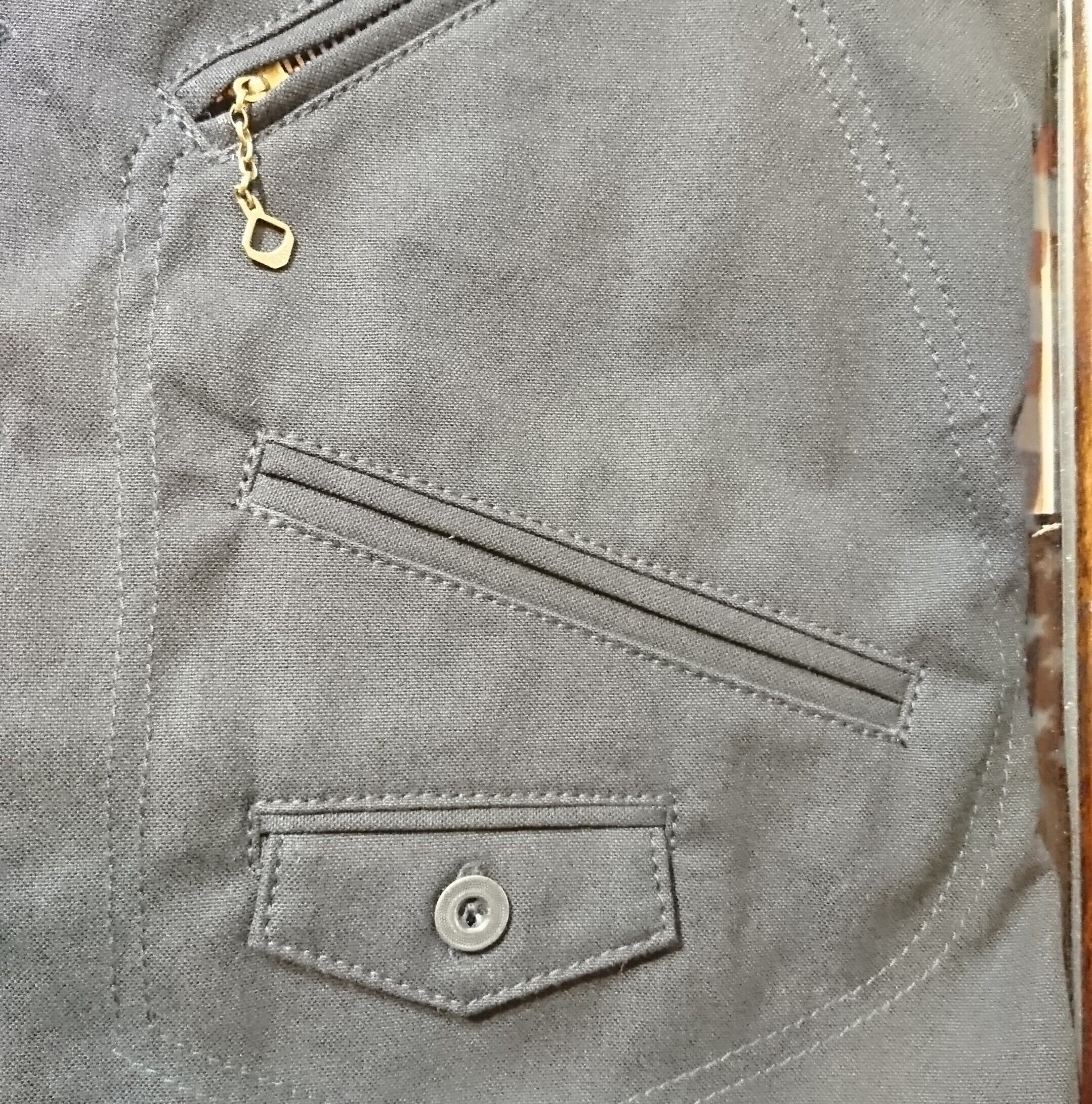 凧布生地に1940年代前後にみられるDポケットを付けた他に見ないデザインです。