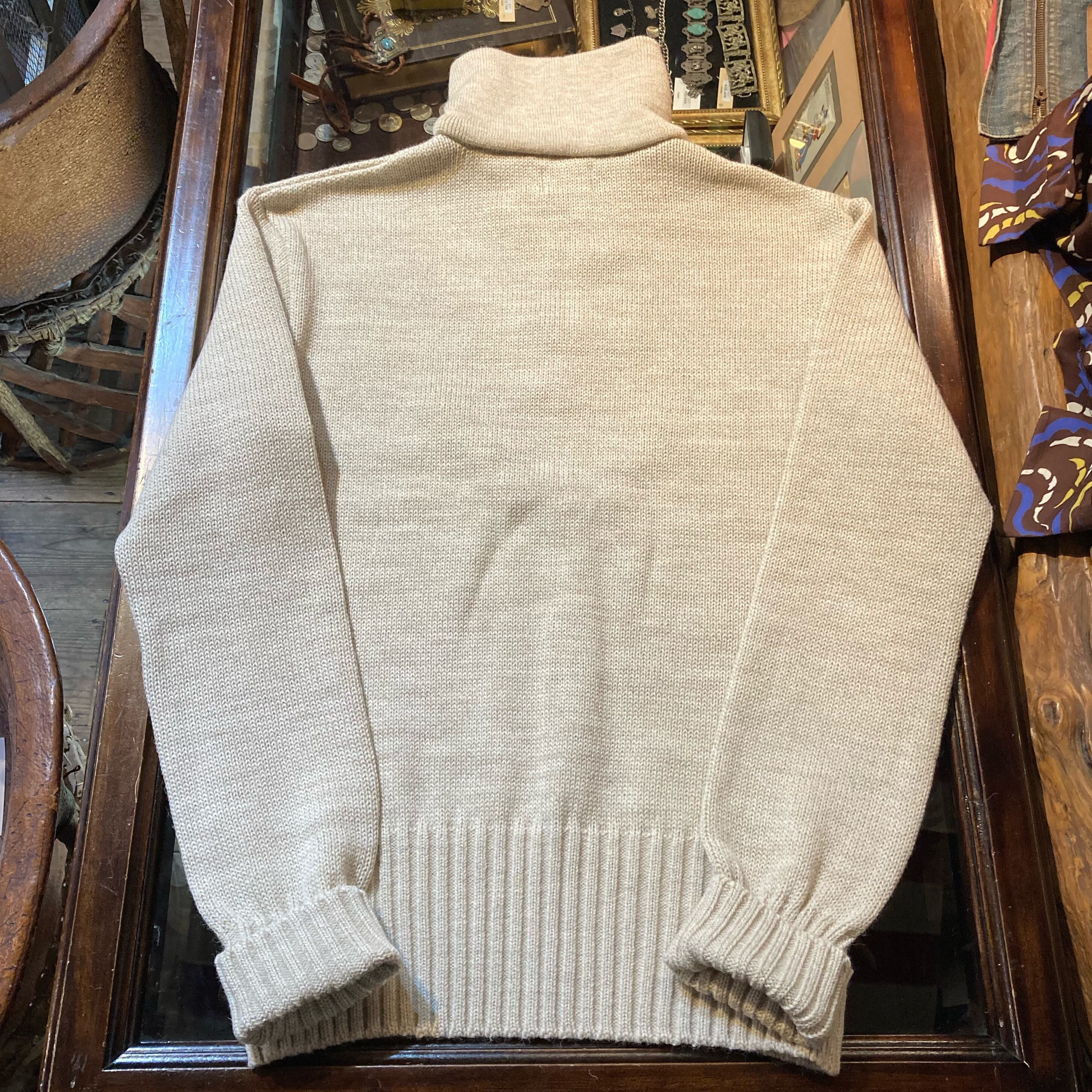 1940~1950年代に実際に存在したモーターサイクルニットを再現した製品です。シルエット、縫製は抜群のビンテージ感です。英国の高級ウールを使用し、正にビンテージ感丸出し本格派のビンテージニットが完成しました。タロンジップを使用し、1950年代の当時の物を再現した個性的なパッチ付!