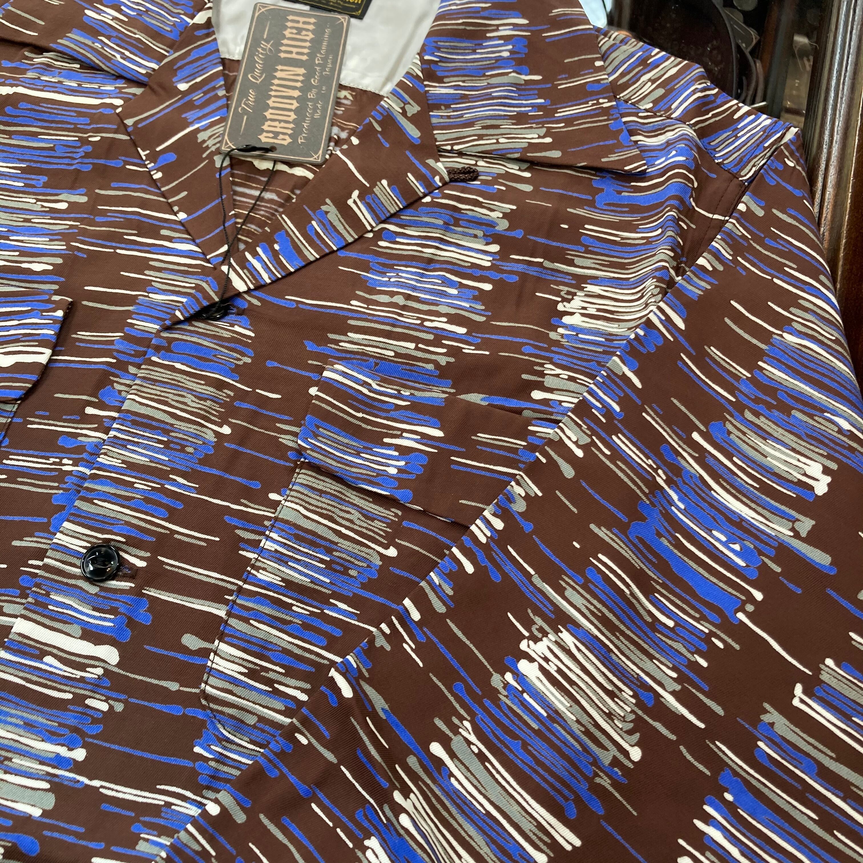 1950年代のタウンクラフト初期のシルエットで制作されたボックスシャツです。 セッパもレーヨン紐を使用、裏側にはキュプラを張り、1950年代に実在したクールな柄をそのままズバリ再現しプリントで仕込んでいます。 レーヨン100%で織り上げ、高級感あふれる仕上がりの一品です。 素材:レーヨン100%