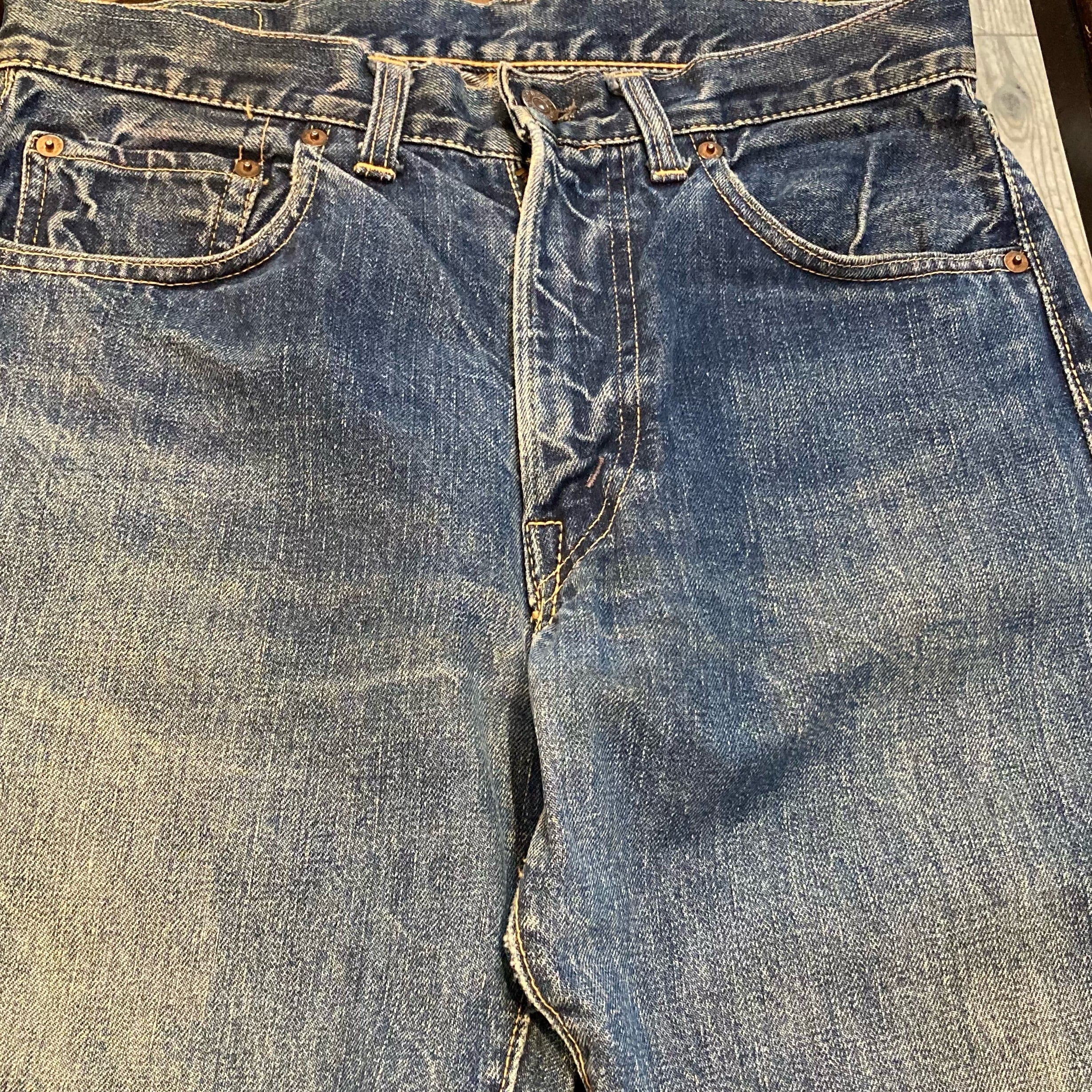 股に画像のようなリペアがありますが、全体に生地がしっかりとしており、色落ちも抜群の極上品です。