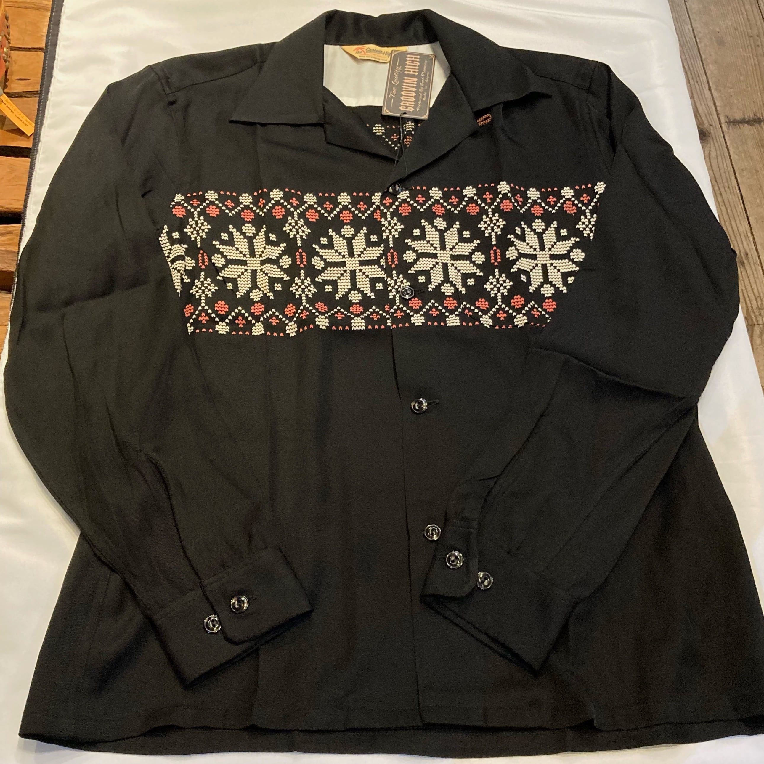 The Groovin High 定番のレーヨンシャツです。 1940年代後期のタウンクラフトのシルエットで制作されたボックスシャツ。 セッパもレーヨン紐を使用、裏側にはキュプラを張り、実在したクールな柄をそのままズバリ復刻再現しています。 レーヨン100%で織り上げ、高級感あふれる仕上がりの一品です。 素材:レーヨン100% サイズ(cm): XS 着丈67/肩幅42/胸囲104/袖丈59 S 着丈68.5/肩幅44/胸囲109/袖丈60 M 着丈70/肩幅46/胸囲114/袖丈61 L 着丈71.5/肩幅48/胸囲119/袖丈62 XL 着丈73/肩幅50/胸囲124/袖丈63 XXL 着丈74.5/肩幅52/胸囲129/袖丈64 XXXL 着丈76/肩幅54/胸囲134/袖丈65